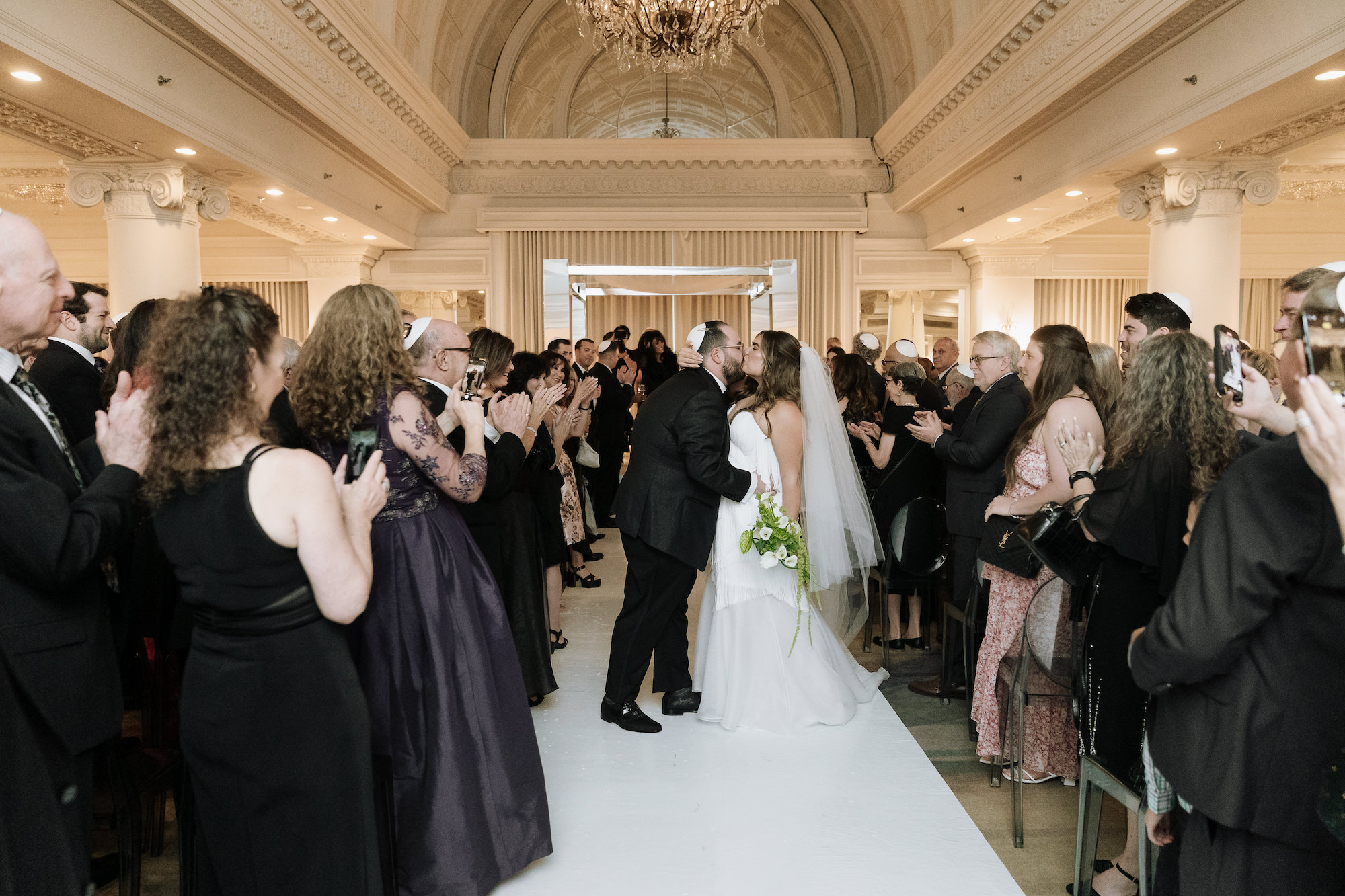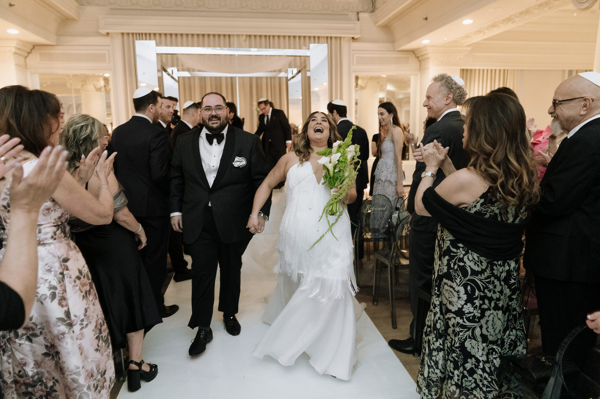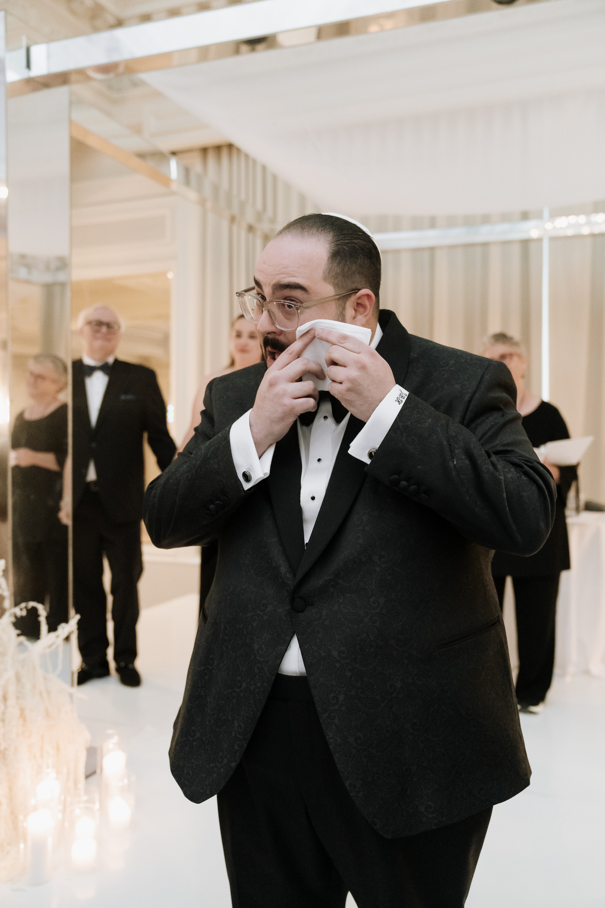 Alexa and Jacob's wedding took place at the beautiful King Edward hotel, surrounded by family and friends. We provided them with our beautiful mirrored chuppah which reflected beautifully in the ceremony space. We also provided them with our clear acrylic plinths to display candles in and around the chuppah.